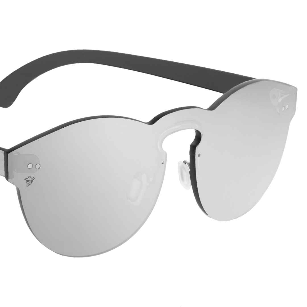Montura y lentes plata espejado.